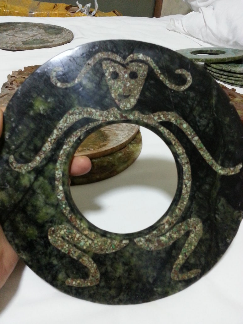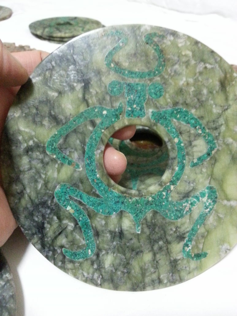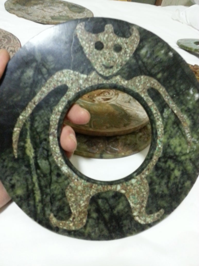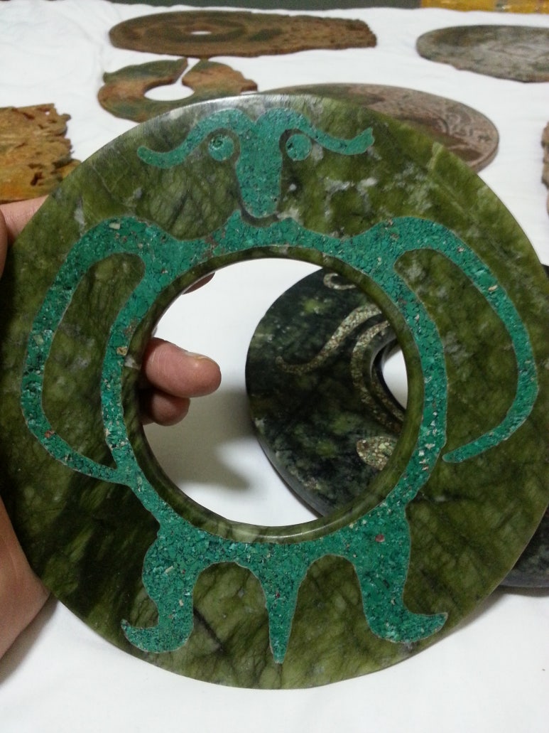 아래는 요령성 객좌현 제단의 제사갱 출토(2018.11) bi disk 일괄 10여점 이다. 상기 그림 2.. 3.. 4..와 흡사한 bi disk 들인데.. 어떻게 해석해야 하는가.!?