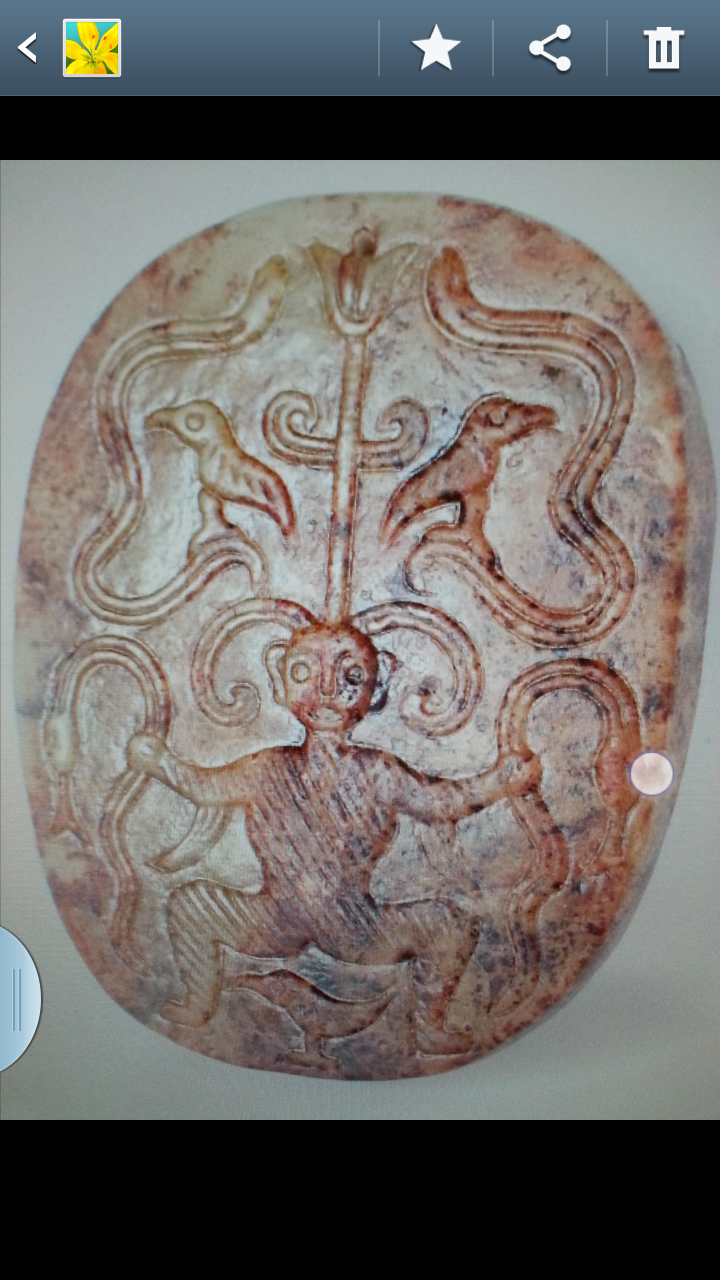 홍산시대의 통천인(通天人)은<1> 사슴(양)뿔 머리를 하고.. (황금뿔사슴..: 시베리아 샤머니즘.. 우두머리.) <2> 양손에 뱀을 쥐고 (Master of Animals)..<3> 좌우에 새들이 날라오고 ( 고니새.. 하늘여신의 전령.. 엔젤..)..<4> 지상의 통천인(通天人)은 생명나무(세계나무: 하늘여신의 화신)를 타고 하늘여신에 다가서서.. 인간의 염원을 갈구한다.. 아래의 또다른 통천인(通天人) 예제에서도 그러한 의미를 읽을 수 있다. 생명나무(세계나무) 대신에 옥저룡 두 마리가 대체되어 있다..