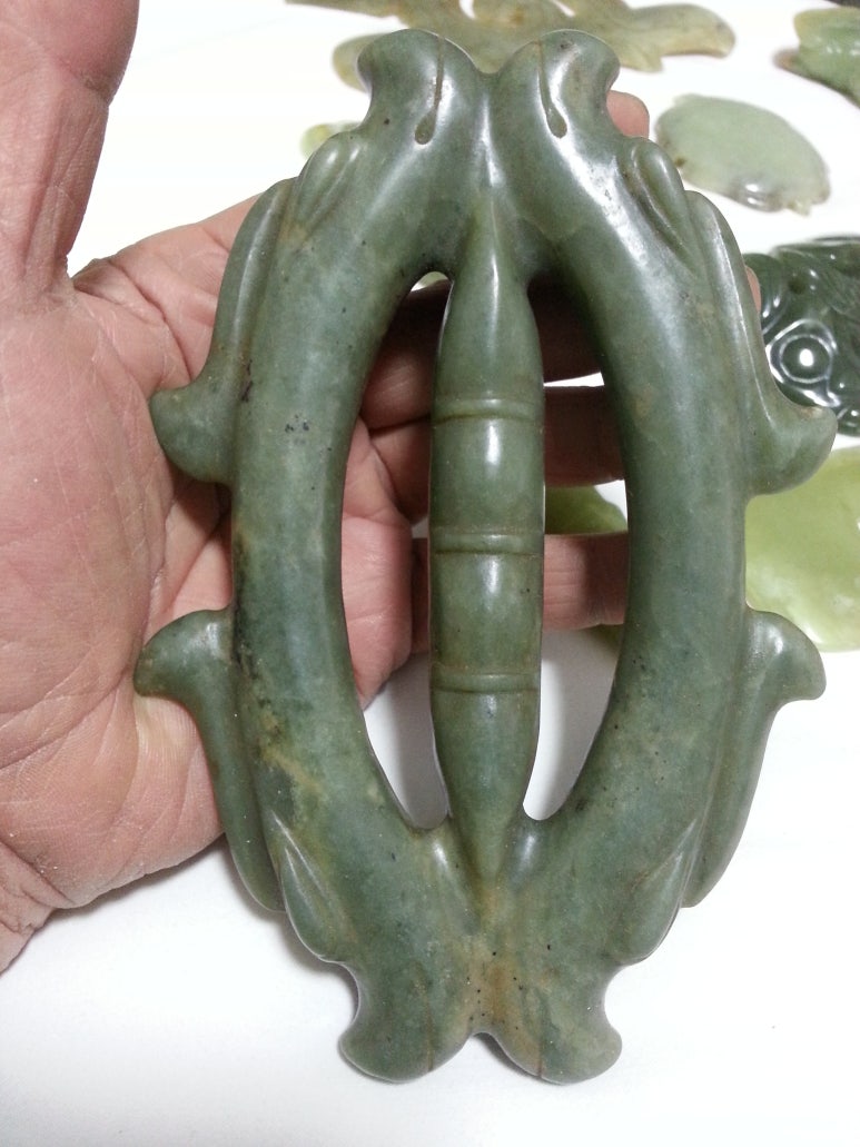 <4> 또다른 예를 들어보자.. 아래 사진의 아름다운 명품 유물의 상징성을 생각해보자. 외부에는 좌우로 용이 감싸고 있으며.. 중앙에는 긴 막대가 가로 지르고 있다. 용은 무엇인가.!? 땅의신(地神)이 용으로 표현되어 출현하는 것이다.. 그리고 地神은 (출생을 위한) 정력충만의 상징성을 갖추고 있다.. 한편 유물 전체적인 형태는 여성의심볼을 미화하여 표현한 듯하다.. 이 명품 유물은 地神의 원기 왕성함을 칭송하는 패식구일 가능성이 많으며.. 地神에게 제를 드릴 때.. 착용하던 신성한 예기(禮器)일 가능성이 높다..