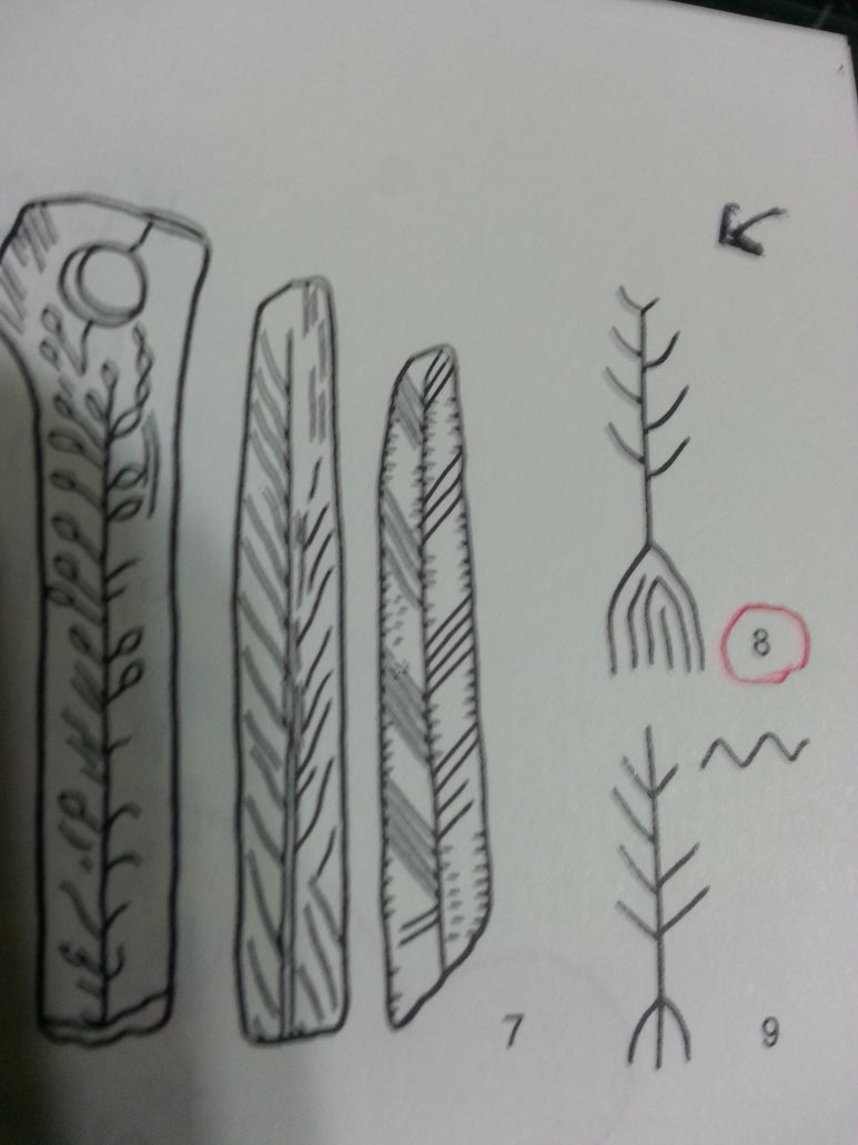 이렇듯.. 우주나무의 형상은 우주나무로 구현되는 3층의 세계에 대한 관념과 마찬가지로 인류 공통의 신화이다.. 아래 사진의 그림9..는 나무 뿌리와 뱀이함께 표현된 중석기 시대의 유물인데.. 이는 나무뿌리에 뱀이 살고 있는 세계나무를 표현한 것이 분명하다. (9천년전..덴마크 출토)