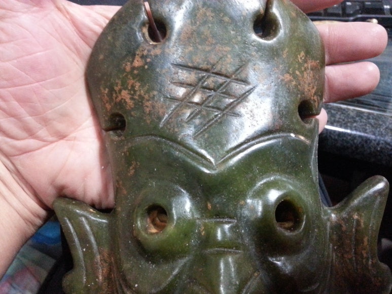 홍산시대의 유물들 중에서..(대부분 옥마스크).. 이마부분에격자문은 실제로도 홍산인들은 이마에 일부러 상처를 내서 격자문 흉터를 만들었었던 것 같은데.. 도대체.. 이마의격자문은 무엇을 상징하는가..!? 격자문과 형태는 유사하나.. 끝부분이 곡선으로 돌아간 것은 태아의 탯줄을 상징한다는 것은 앞서 언급한 바 있다.. 허나 이마의 직선 격자문은 별도 상징성을 지닌 것이리라..보다더 많은 출토 자료들을 입수+수입하여.. 교차 비교한다음에 비로소 어렴풋이 해답에 다가설 수 있을 것이다..