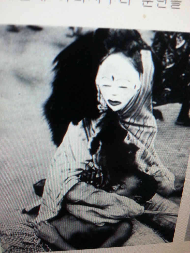 헌데 이 푸누 마스크의 이마에는 격자문이 새겨져 있다.실제로 원시농업+수렵으로 생활하는 부족들은 예전이나최근에도 마찬가지로 이마..(또는 상반신.. 어깨 등등)에깊은 상처를 내서.. 고의적으로 흉터를 만들어서.. 외관을장식하는 풍습이 있었다..