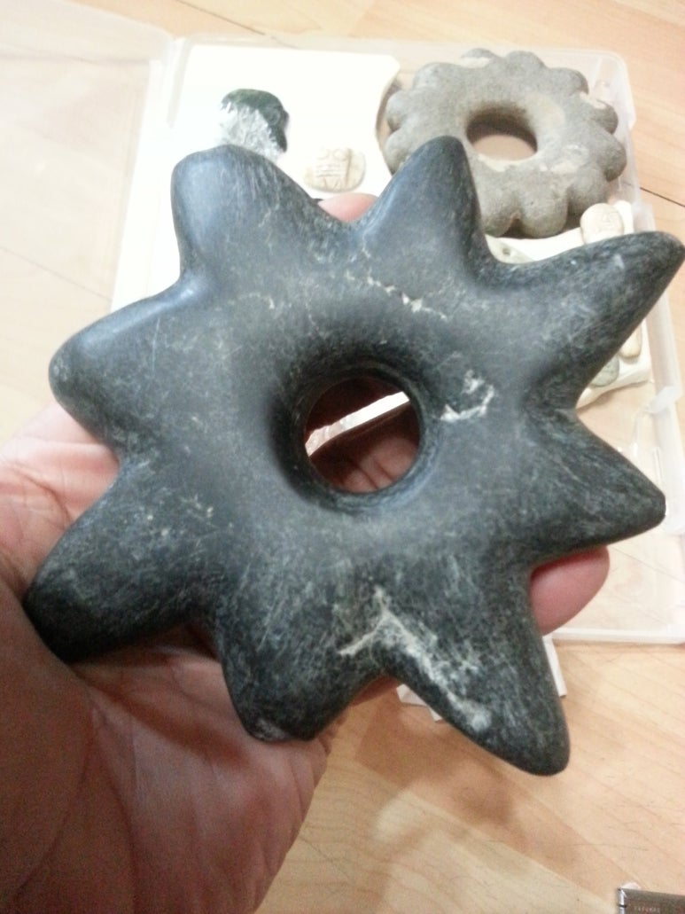 출토 홍산유물들을 입수하여 손바닥에 궁그리며 차분히