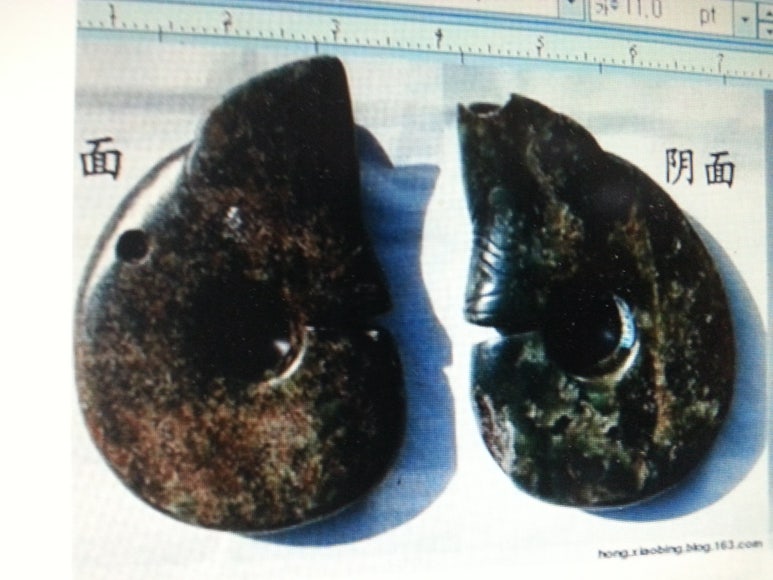 红山玉器诸多皮壳当中的一种————阴阳面 2010-09-03 심양의 홍산문화 연구가 홍소병씨의 자료는 유익하다. 일독을 권한다
